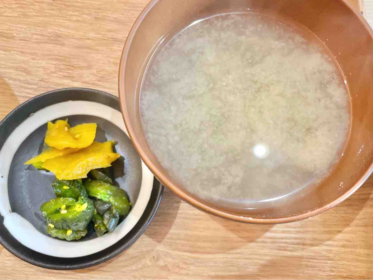 お漬物とお味噌汁。