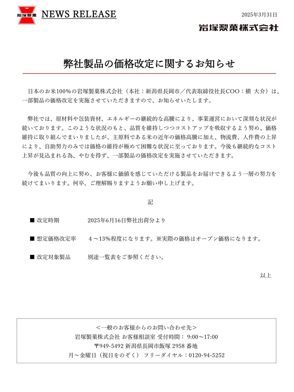 ※プレスリリースは、岩塚製菓株式会社公式HPよりダウンロードしました。