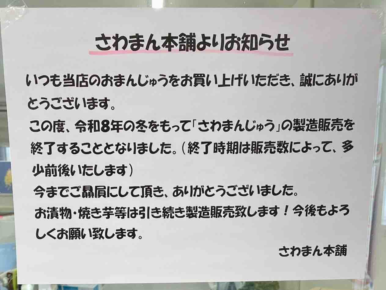『さわまん』販売終了のお知らせ発見。涙