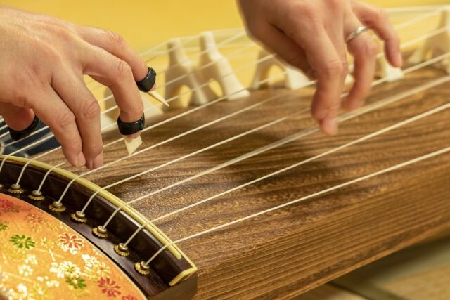 民謡と津軽三味線、箏や太鼓の演奏で