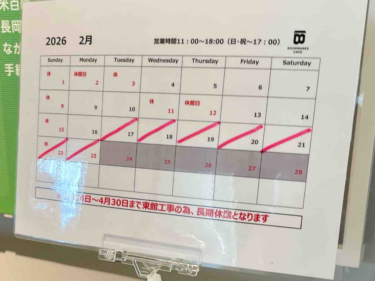 休業期間は、2月17日~4月30日まで。